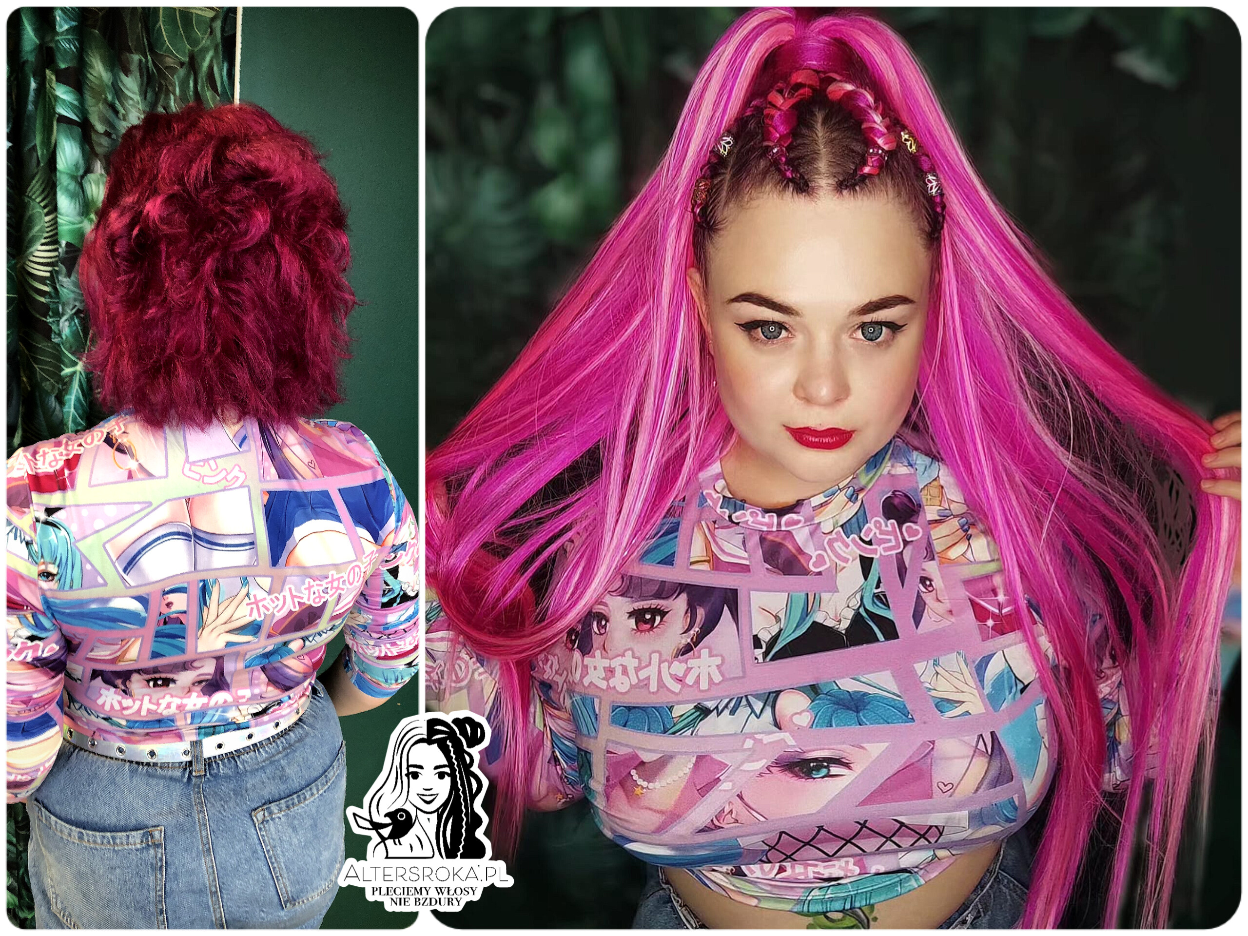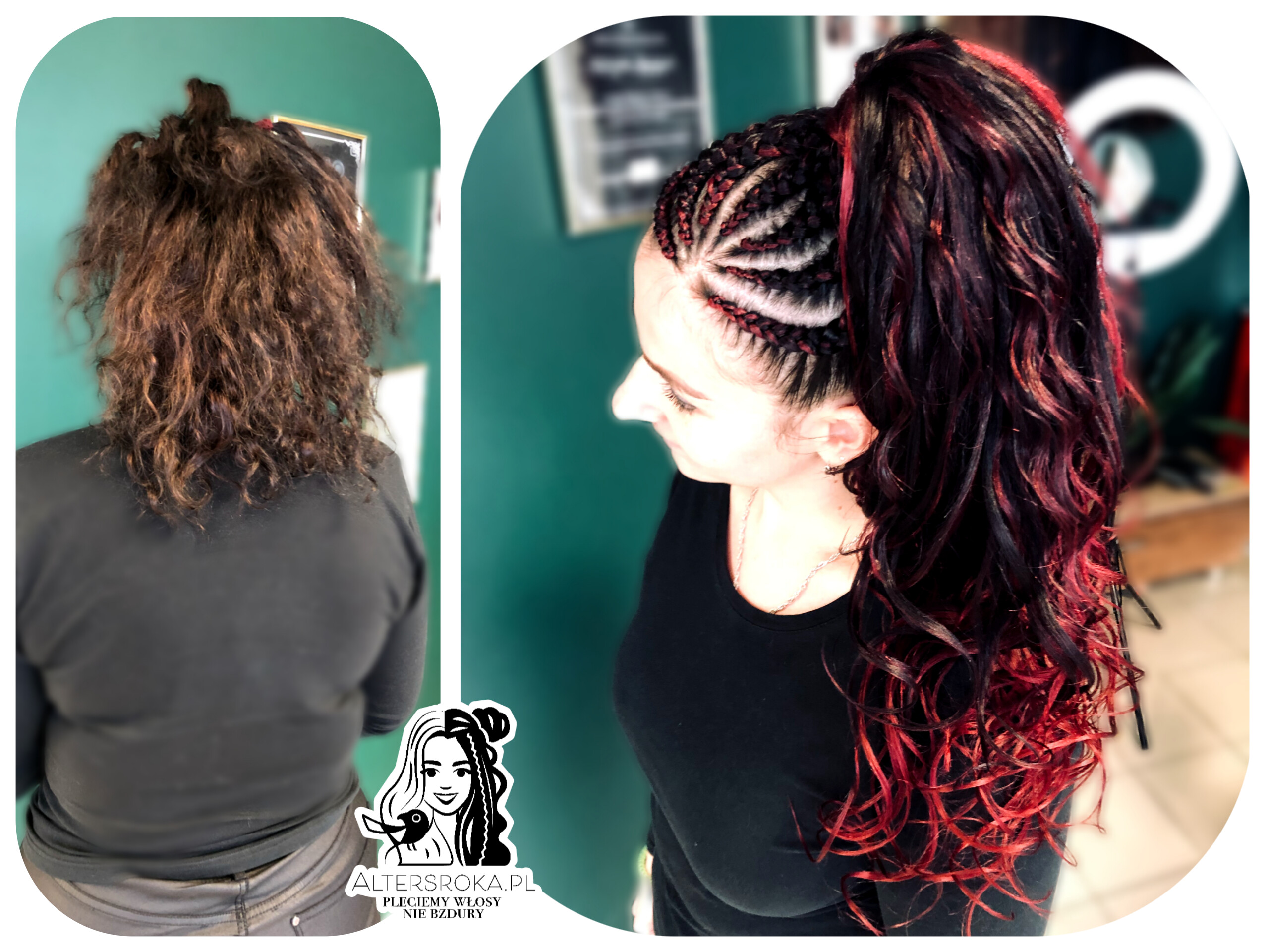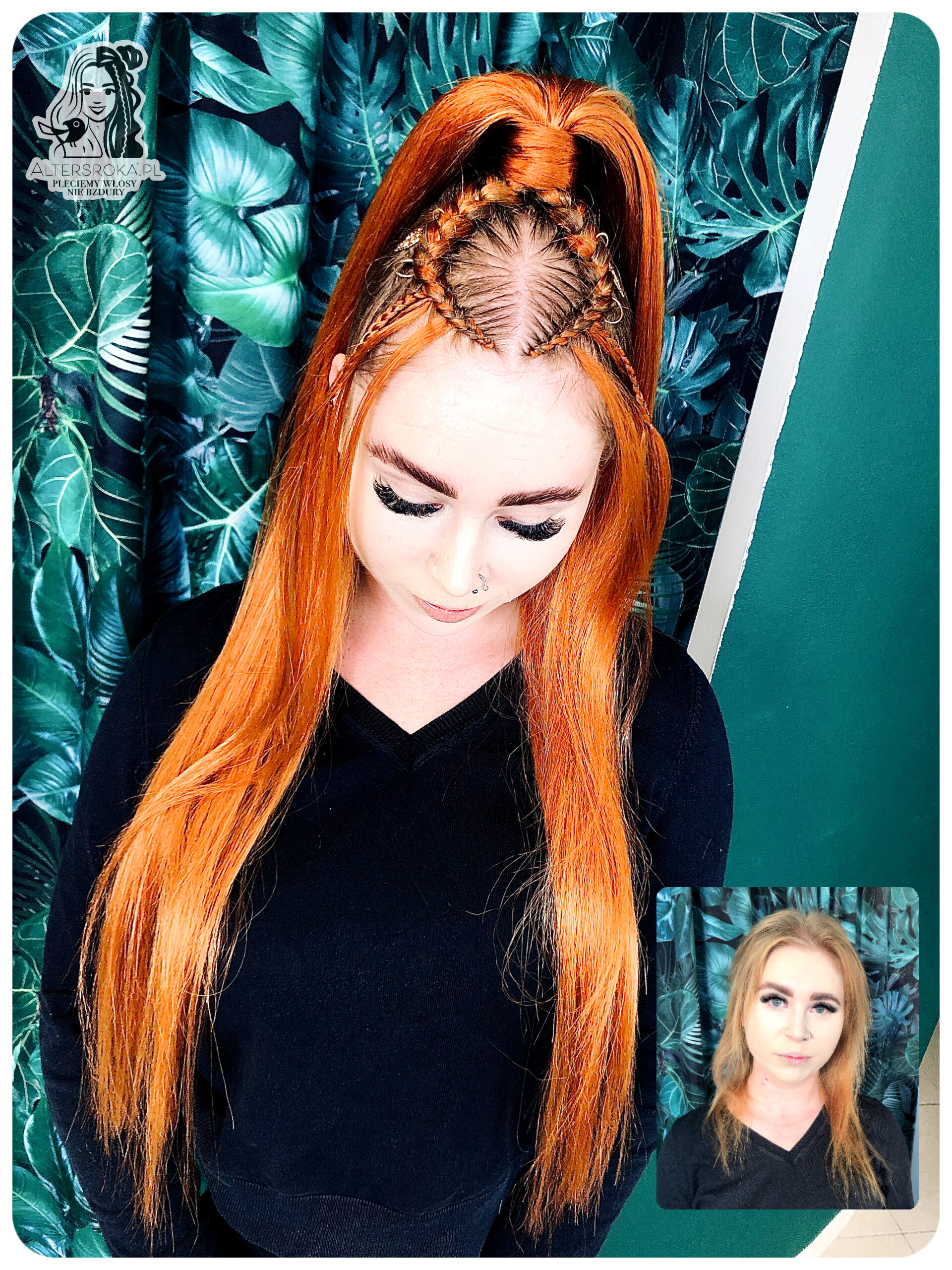 Mimo tego, że całe włosy są splecione w tym przypadku też efektem jest przedłużenie włosów i zmiana koloru.