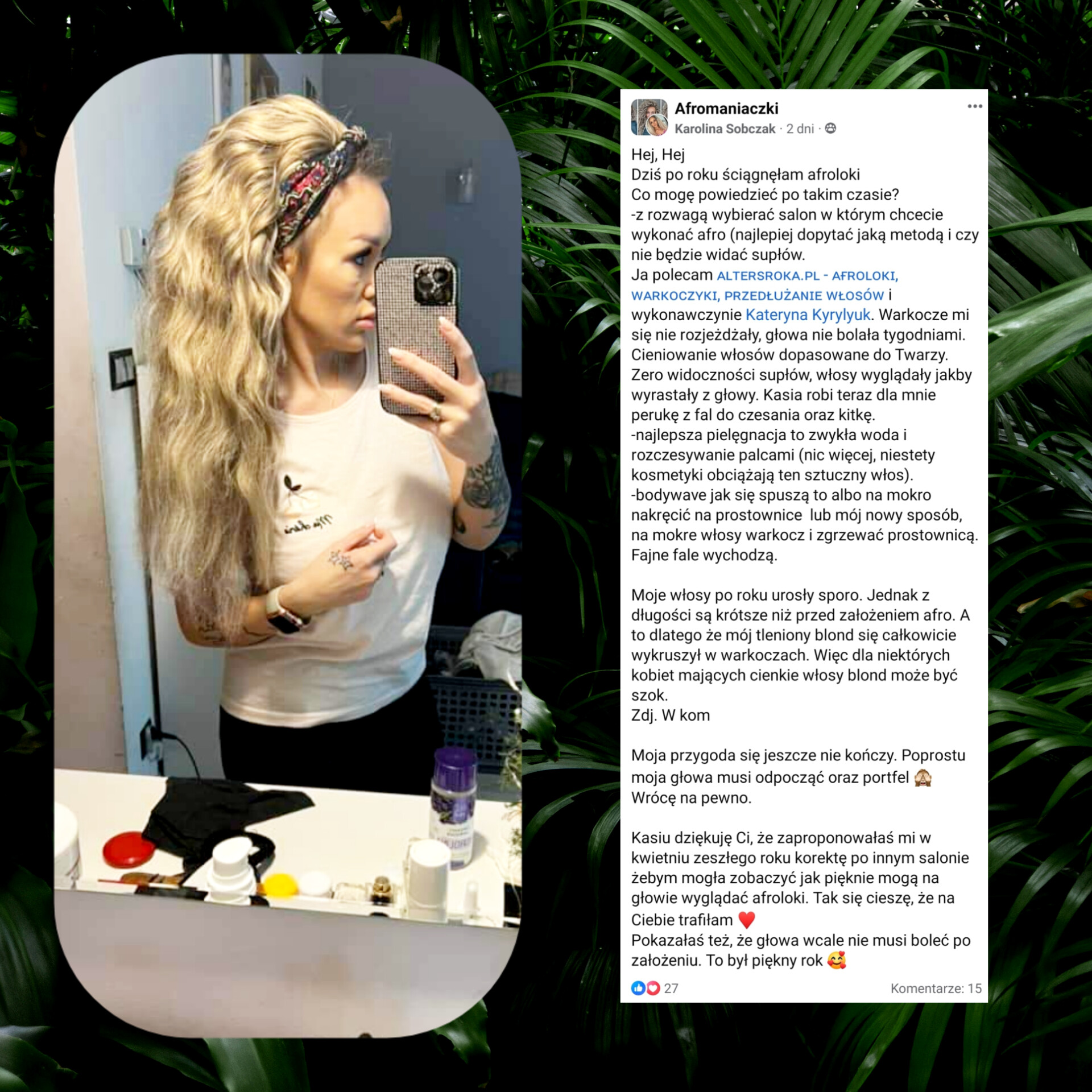 Absolutnie nie polecam eksperymentowania z włosami naturalnymi kręconymi, które są skręcane chemicznie i farbowane. Bardzo ciężko się rozczesuje je to jest wręcz niemożliwe, po czesaniu skręt zaczyna wywijać różne niespodzianki, tam proste gdzie indziej falowane a gdzieś tam kręcone, sypią się końcówki okropnie po krótkim czasie noszenia. Wiem bo sama się skusiłam i poczułam różnicę. Nosiłam 2 tyg metodą keratynowa no i nie polecam ani nie polecają ich inne osoby które spróbowały. Mogą być na jedną imprezę albo sesję zdjęciowa założone na spinki i tyle. Naturalne, kosztowały mnie 2000zł ale to bardzo słaba jakość.