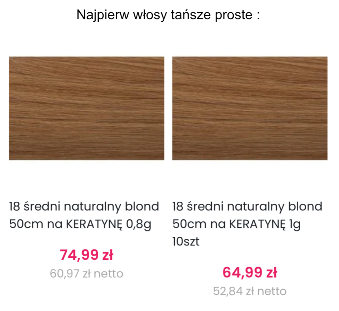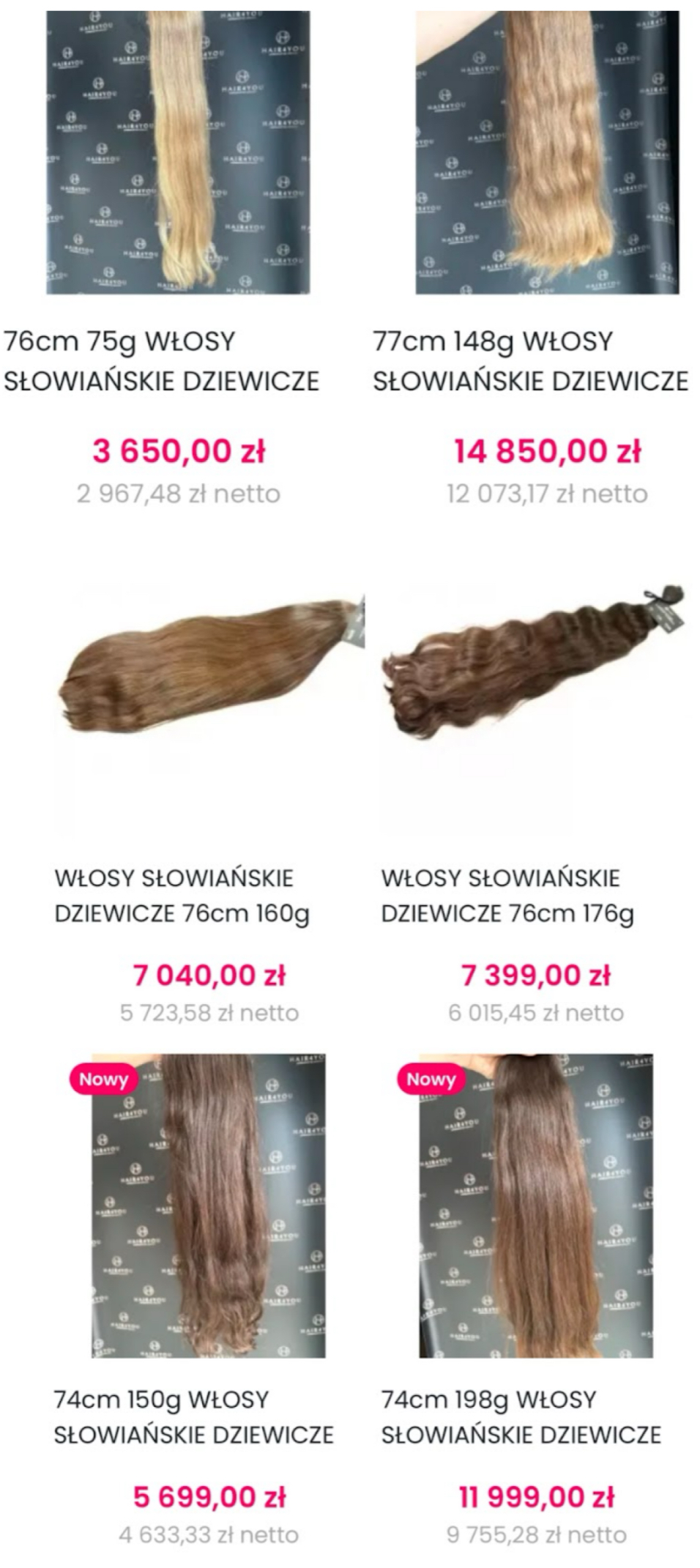 Zakup włosów naturalnych zaczyna się od 1500zl ( proste ) do 15 000zl ( długie kręcone ) tu screen do wglądu z hurtowni w Gdańsku Hair4You dla przykładu