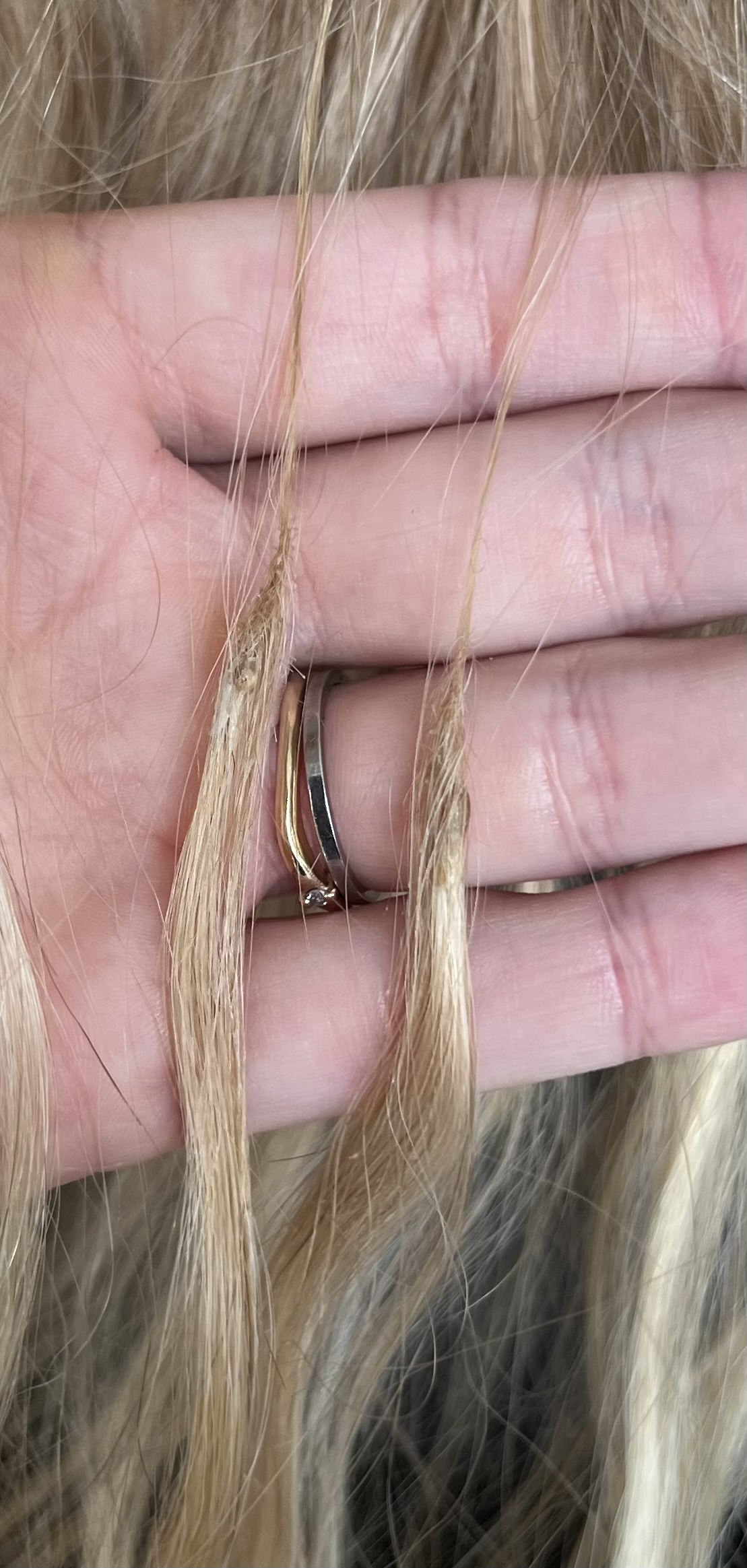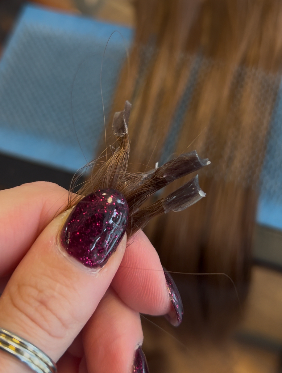 Przy metodzie Keratynowej po każdym zdejmowaniu muszę zlikwidować stare łączenie na każdym pasemku obcinając je i zrobić nowe kapsułkowanie z nową keratyną czyli z długości ucieka ok 0.5 cm przy każdej korekcie.