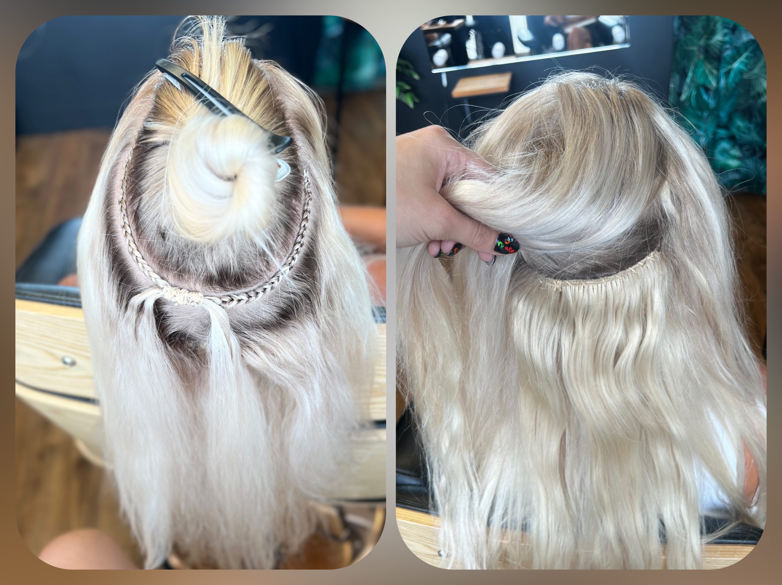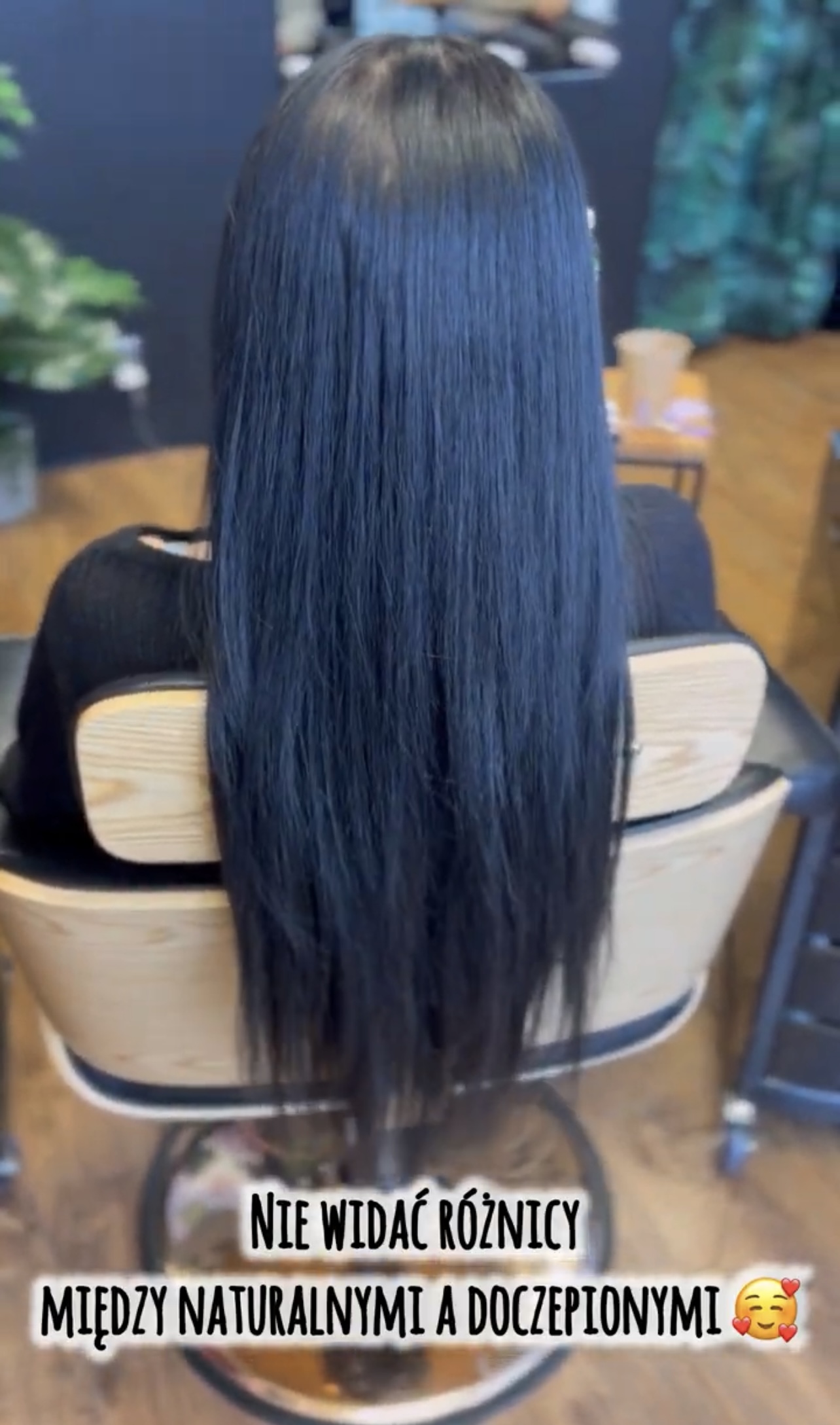 W tej wersji włosy doczepione muszą być idealnie dopasowane do wlosow naturalnych. Nie mogą się różnić kolorem ani strukturą. Minimalna długość naturalnych włosów żeby móc przedłużyć to 15cm